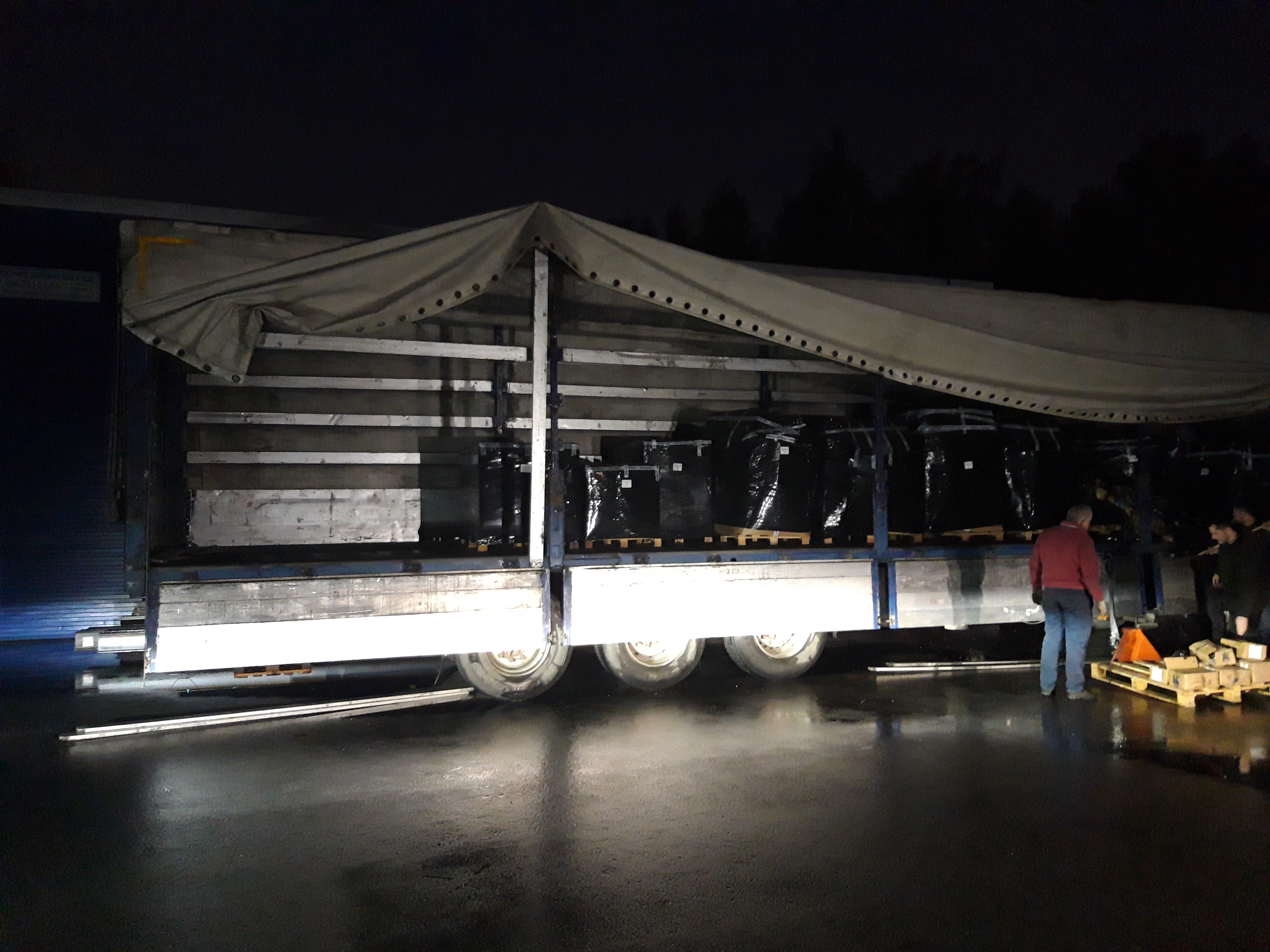 12.09.2022 г. Вечерняя разгрузка. Пришли рукава 2SN и 4SH. Следующий груз сформирован и выкуплен по предзаказу. Машину для формирования склада будем заказывать уже в октябре с доставкой на ноябрь.